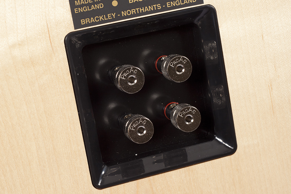 Crossover: A dedikált kétrétegű áramköri kártya a legfinomabb alkatrészekkel rendelkezik; ProAc sok eres, oxigénmentes rézkábel; Megosztva az opcionális kétvezetékes és a kettős erősítéshez